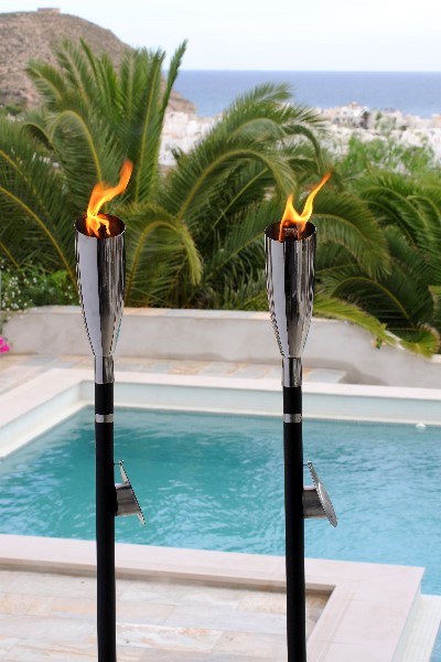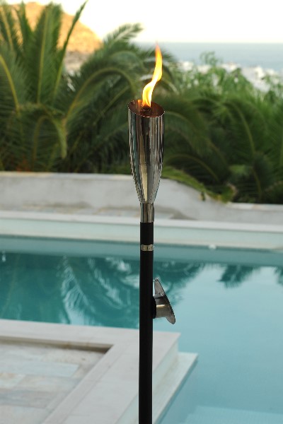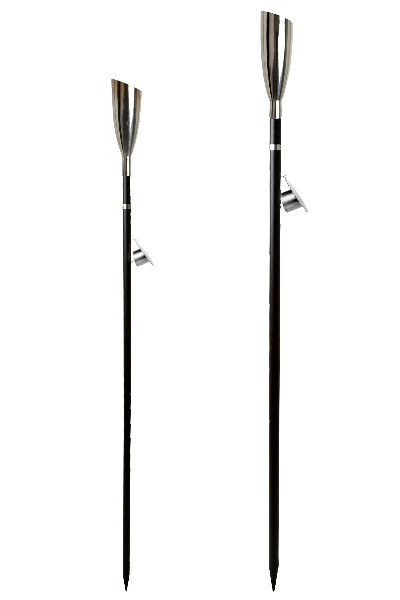 Ölfackel PISA 137 cm, polierter Edelstahl und schwarzes Hartholz