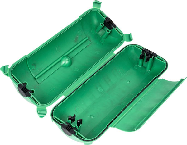 Dieser Kabelsafe in großer Ausführung ist ein Tritt- und wasserfester Schutz für Steckverbindungen im Außenbereich. Einfach vergraben, hinlegen oder aufhängen. Die Steckverbindung wird gegen Beschädigung und Wassereintritt geschützt. Zudem wird auch der Zugriff für Kinder erschwert. Die Schutzart entspricht IP 44.