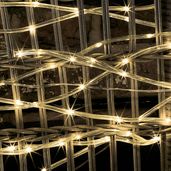 Feiner Mini-Lichterschlauch mit strahlenden warmweißen LED für ein kreatives Lichtambiente in Innenräumen und Außenanlagen. Der LED-Lichtschlauch hat einen schlanken Durchmesser von phänomenalen 0,5 cm und ermöglicht dadurch fantastisch ausgefallene Lichtdekorationen. Auf einer Länge von 20 m sind 260 warmweiß strahlende LED, die für eine geschmackvolle Lichtumgebung sorgen, verteilt. Der Mini-Lichtschlauch wird über einen 4,V-Außentrafo betrieben und verfügt über ein praktisches 4 m langes Zuleitungskabel. Aufgrund des geringen Biegeradius können Sie Ihr Dekovorhaben spielend einfach umsetzen. Ob geradlinige Konturen von Kanten und Rahmen oder verspieltes Umwickeln und Umspannen von Pfosten, Geländern und allem, was Sie in Szene setzen möchten, den Mini-Schlauch können Sie ganzjährig für Ihre Ideen einsetzen. Der Mini-Lichtschlauch ist übrigens auch als batteriebetriebene Variante in den Längen 5 m und 10 m erhältlich. |