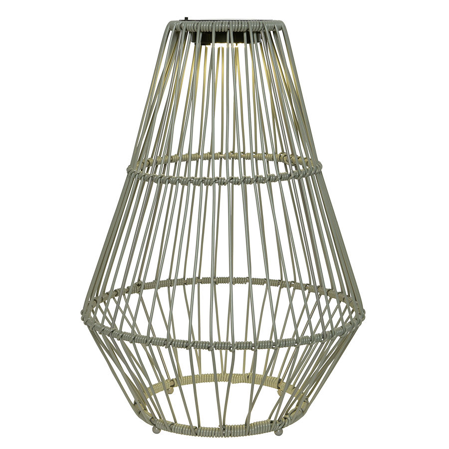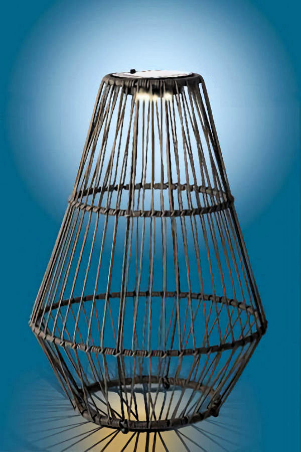 Solar-Bodenleuchte im zeitlosen Lounge-Style für ein modernes Design und eine ästhetische Beleuchtung am Abend. Die 54,5 cm hohe 37,5 cm breite Solarleuchte kann auf alle ebenen Flächen platziert werden und wertet besonders auf Balkonen, Terrassen und rund um Sitzgruppen im Garten und Hof das Ambiete auf. Die Solarleuchte besteht aus einem stabilen Eisengestell, das doppelreihig mit Kunststoff-Strängen umwickelt ist. Die hellgraue Farbe der Stränge in Rattan-Optik harmoniert perfekt mit allen Holz-Gartenmöbeln, Rattan-Gartenmöbeln und Lounge-Sitzgruppen. Die Solarleuchte Rhombus sieht nicht nur fantastisch aus, sie zeichnet auch herrliches Lichtmuster auf Untergründe und Böden. Die Solarlampe ist mit 25 warmweissen LED bestückt, die eine Lichtleistung von 20 Lumen bewirken. Das Solarmodul mit An- und Ausschalter wird über einen leistungsstarken, austauschbaren Akku LiFePo4 14500 gespeist. |