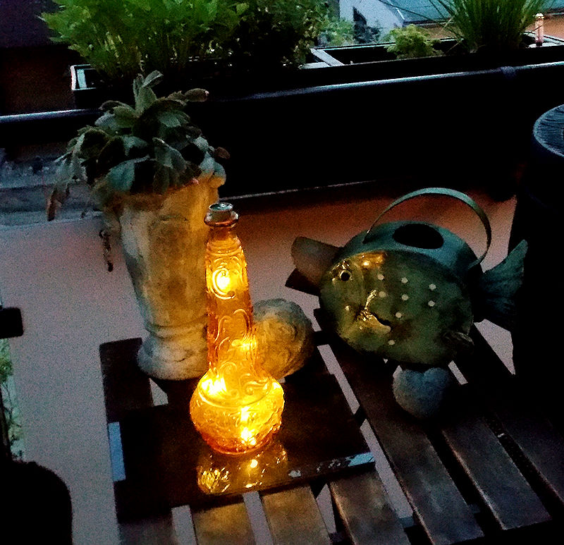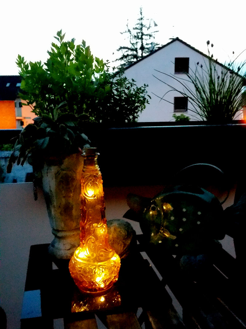LED-Flaschenkorken als dekoratives Element im Aussenbereich Der Solar-Flaschenkorken ist mit einer 75 cm langen Silberdraht-Lichterkette mit insgesamt 8 warmweißen LED bestückt. Die Lichterkette lässt sich sehr einfach biegen und behält Ihre Form. Das kleine Solarpanel im Deckel des Deko-Korkens lädt tagsüber den Akku auf und lässt bei Einbruch der Dämmerung die Lichterkette erstrahlen. Mit dieser witzigen Idee können Sie Ihre schönsten Flaschen spielend einfach zu einer wunderschönen Lichtdekoration umfunktionieren. Da der Solar-Flaschenkorken völlig unauffällig in der Öffnung der Flasche verschwindet, ergibt sich bei Dämmerung ein überraschender und stimmungsvoller Aha-Effekt. |