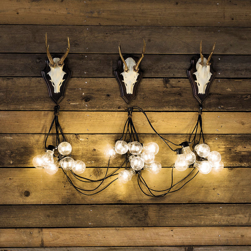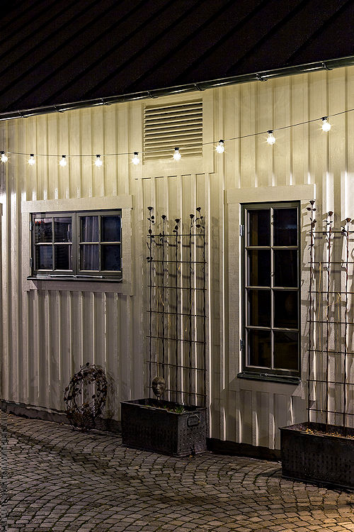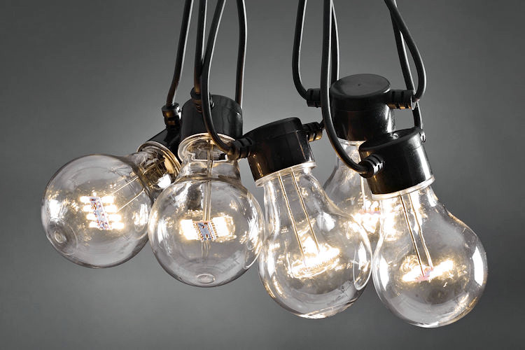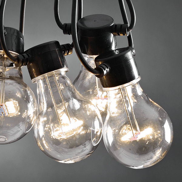 Biergarten-Lichterketten als hochwertiges, zeitgemäßes und erweiterbares 24Volt-LED-System mit neuester, elektronischer Trafo-Technik für ganzjährige Festbeleuchtungen im Innen- und Außenbereich. Der Klassiker unter den Lichterketten ist seit vielen Jahren im Einsatz bei Straßenfesten, Weihnachtsmärkten, Weinfesten, Biergärten, Gartenpartys und anderen Festivitäten. Mit diesem LED-System, erhalten Sie eine Biergarten-Lichterkette in moderner Optik und innovativer Technik. Die LED-Lichterkette ist mit 10 klaren LED-Birnen in Glühlampenform in klassischer E27-Größe ausgestattet. Jede LED-Birne ist mit 8 warmweißen LED bestückt. Das warmweiß strahlende Licht der insgesamt 80 LED sorgt für eine behagliche und feierliche Atmosphäre. Die Erweiterungs-Lichterkette ist mit schwarzem Kabel ausgestattet und hat eine Länge von 10 m bei einem Lampenabstand von 1 m. So gelingen weitläufige Beleuchtungen wirkungsvoll und spielend leicht. Das Biergartenketten-System wird über einen elektronischen 24-Volt-Außentransformator betrieben und ist damit noch leistungsfähiger und sparsamer im Verbrauch. Diese LED-Biergartenkette dient als Erweiterungskette und hat weder Zuleitungskabel noch 24-Volt-Außentrafo. Dank des koppelbaren Stecksystems kann die Basis-Lichterkette mit bis zu 3 Erweiterungs-Lichterketten verlängert werden. Mit maximal 4 Ketten erreichen Sie ohne das Zuleitungskabel eine stattliche Länge von 40 m. Hinweis: Elemente dieses neuen Biergartenketten-Systems sind nicht mit den alten Systemketten kompatibel. |