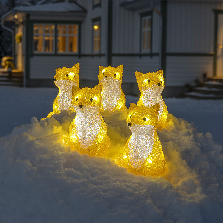 LED-Acryl-Füchse 5er-Set, 40 LED kaltweiß