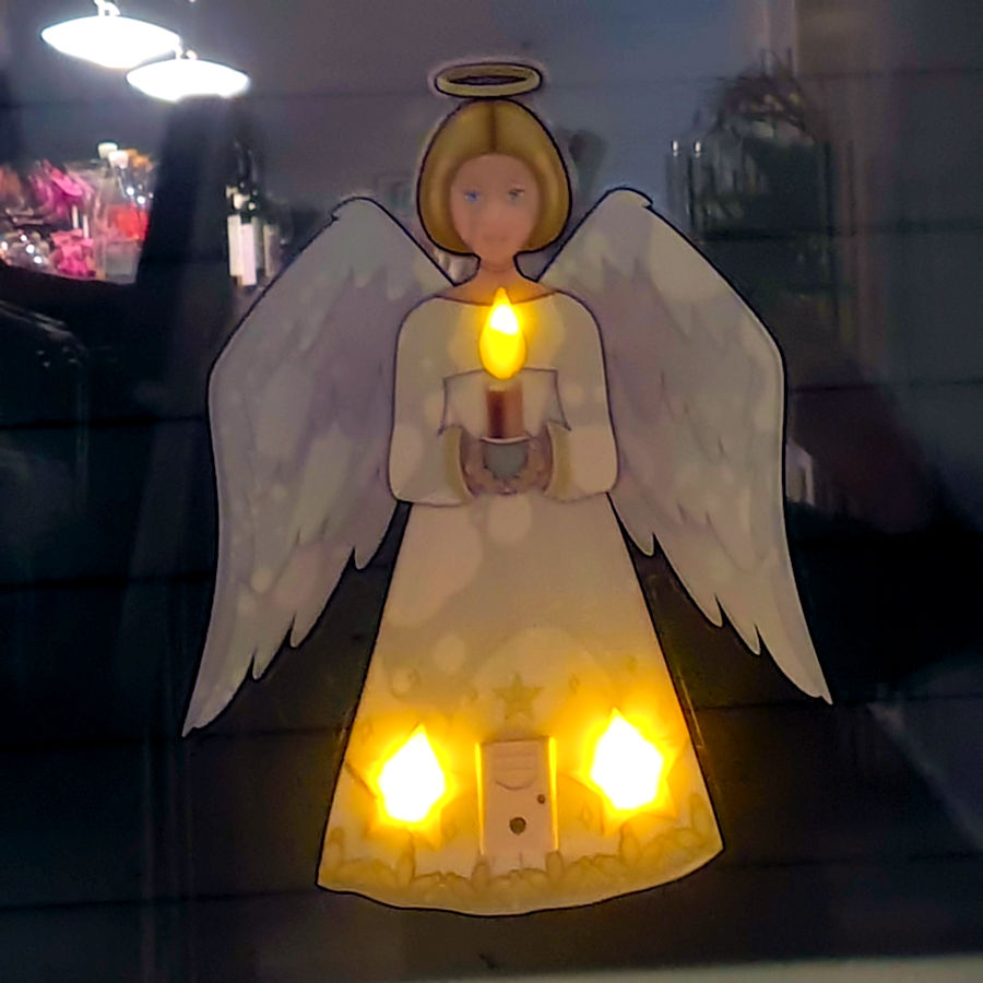 Die LED-Fensterbilder aus dem Hause ADFOLED sind innovative, flache, doppelseitig bedruckte und selbsthaftende, wiederverwendbare Folien-Sticker mit festlichem Weihnachtsmotiv. Die Engelsfigur hält eine goldene Kerze in der Hand, welche von einer sanft flackernden LED beleuchtet wird. Auf Ihrem Gewand leuchten 2 Sterne, die ebenso illuminiert werden. Die Anwendung ist denkbar einfach. Die Adventskerzen werden von der Trägerfolie abgezogen und können von innen auf alle glatten, sauberen und ebenen Oberflächen, wie Fenster, Glas- und Spiegelfächen angebracht werden. Da die Motive beidseitig bedruckt sind, eignen sie sich ideal als Fensterbeleuchtung. Von außen und innen sichtbar, verbreiten sie rundum eine einladende und gemütliche Atmosphäre. Der Betrieb erfolgt jeweils über ein kleines Batteriefach für eine 3-V-Lithium-Knopfzelle CR2032, die im Lieferumfang enthalten ist. Das Batteriefach verfügt über einen Timer, der nach 5 Stunden die LED ausschaltet. Nach 19 Stunden Pause schaltet sich das ganze automatisch wieder an. Da die weihnachtlichen Fensterbilder auf den Oberflächen haften und nicht kleben, können sie diese bei Nichtgebrauch leicht und rückstandsfrei ohne Spuren und Klebereste entfernen. Bringen Sie das Fenstermotiv wieder auf die Trägerfolie auf. So können sie es perfekt lagern und bei Bedarf wiederverwenden. Lassen Sie sich von den leuchtenden Fenster-Weihnachtsmotiven verzaubern und verschönern Sie Ihre privaten Fenster oder gewerblichen Schaufenster mit den flammenlosen Fensterbildern. Sie sind ebenfalls für Bereiche geeignet, in denen aufgrund der Brandgefahr kein offenes Feuer erlaubt ist. |