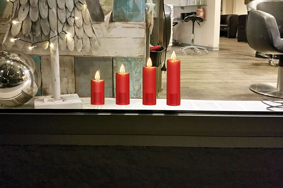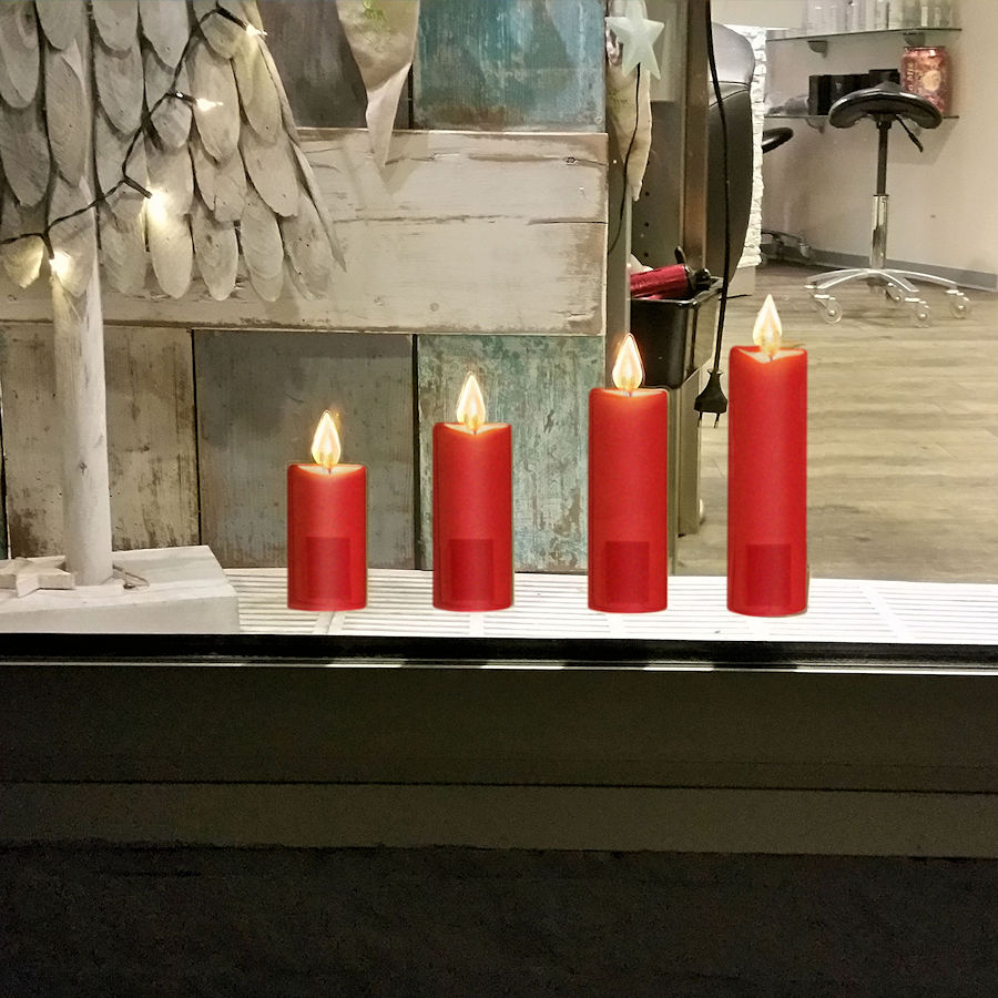 Die LED-Fensterbilder aus dem Hause ADFOLED sind innovative, flache, doppelseitig bedruckte und selbsthaftende, wiederverwendbare Folien-Sticker mit festlichem Weihnachtsmotiv und einer halbplastischen 3D-LED-Flamme mit zart flackerndem Kerzenschein. Die 4 roten Adventskerzen besitzen einen Durchmesser von je 5 cm und unterschiedliche Höhen von 12 cm, 15 cm, 17 cm und 20 cm. Hervorzuheben ist die gewölbte, halbplastische 3D-Kerzenflamme, die im Inneren mit einer gelb-amberfarbenen Glimmer-LED ausgestattet ist und für den festlichen Kerzenschein sorgt. Die Anwendung ist denkbar einfach. Die Adventskerzen werden von der Trägerfolie abgezogen und können von innen auf alle glatten, sauberen und ebenen Oberflächen, wie Fenster, Glas- und Spiegelfächen angebracht werden. Da die Motive beidseitig bedruckt sind, eignen sie sich ideal als Fensterbeleuchtung. Von außen und von innen sichtbar, verbreiten sie rundum eine einladende und gemütliche Atmosphäre. Der Farbton der roten Kerzen schimmert von außen betrachtet je nach Fensterglasart unterschiedlich. Der Betrieb erfolgt jeweils über ein kleines Batteriefach für eine 3-V-Lithium-Knopfzelle CR2032, die im Lieferumfang enthalten ist. Das Batteriefach verfügt über einen Timer, der nach 5 Stunden die LED ausschaltet. Nach 19 Stunden Pause schaltet sich das ganze automatisch wieder an. Da die weihnachtlichen Fensterbilder auf den Oberflächen haften und nicht kleben, können sie diese bei Nichtgebrauch leicht und rückstandsfrei ohne Spuren und Klebereste entfernen. Bringen Sie das Fenstermotiv wieder auf die Trägerfolie auf. So können sie es perfekt lagern und bei Bedarf wiederverwenden. Lassen Sie sich von den leuchtenden Fenster-Weihnachtsmotiven verzaubern und verschönern Sie Ihre privaten Fenster oder gewerblichen Schaufenster mit den flammenlosen Fensterbildern. Sie sind ebenfalls für Bereiche geeignet, in denen aufgrund der Brandgefahr kein offenes Feuer erlaubt ist. |