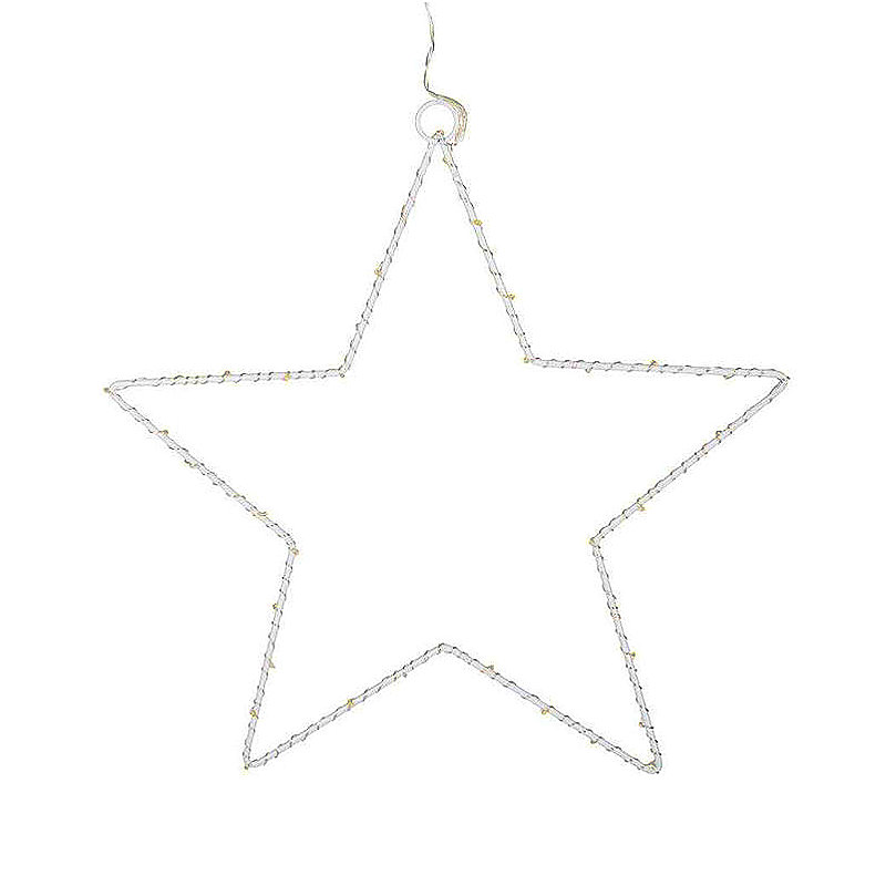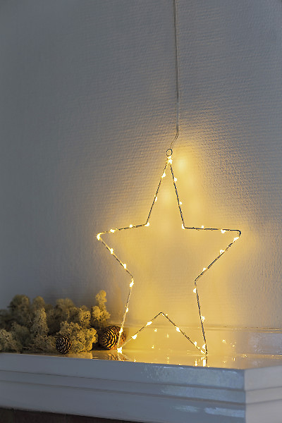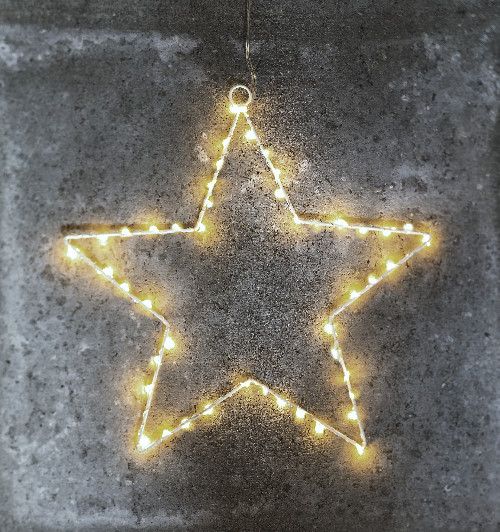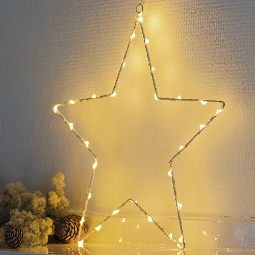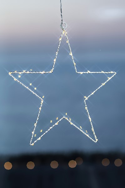 FHS LED-Silberdraht-Schmuckstern 32cm, 48 warmweiße LED-Tropfen, Outdo...