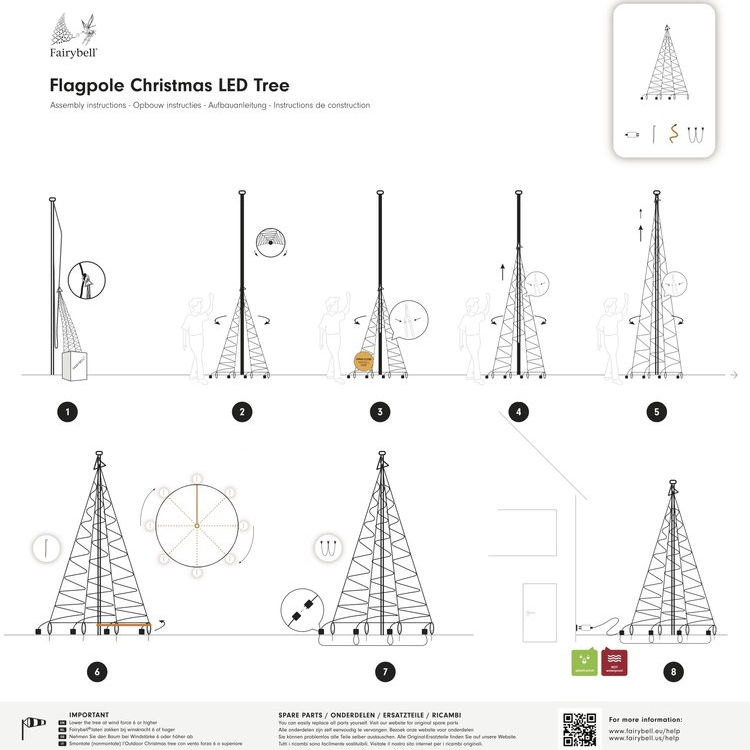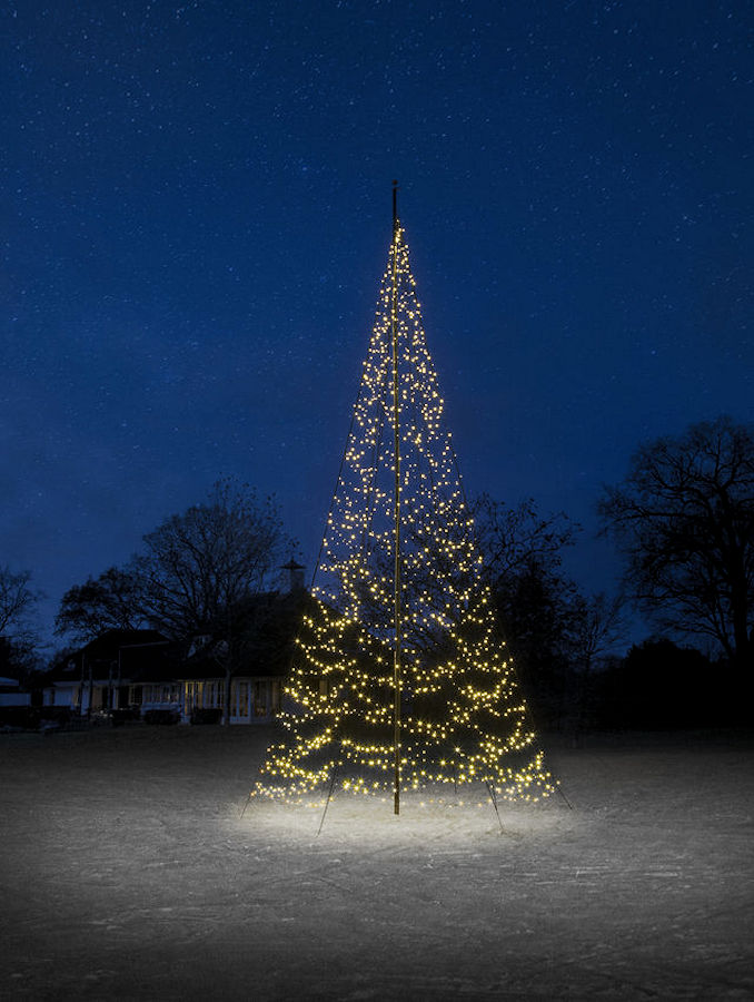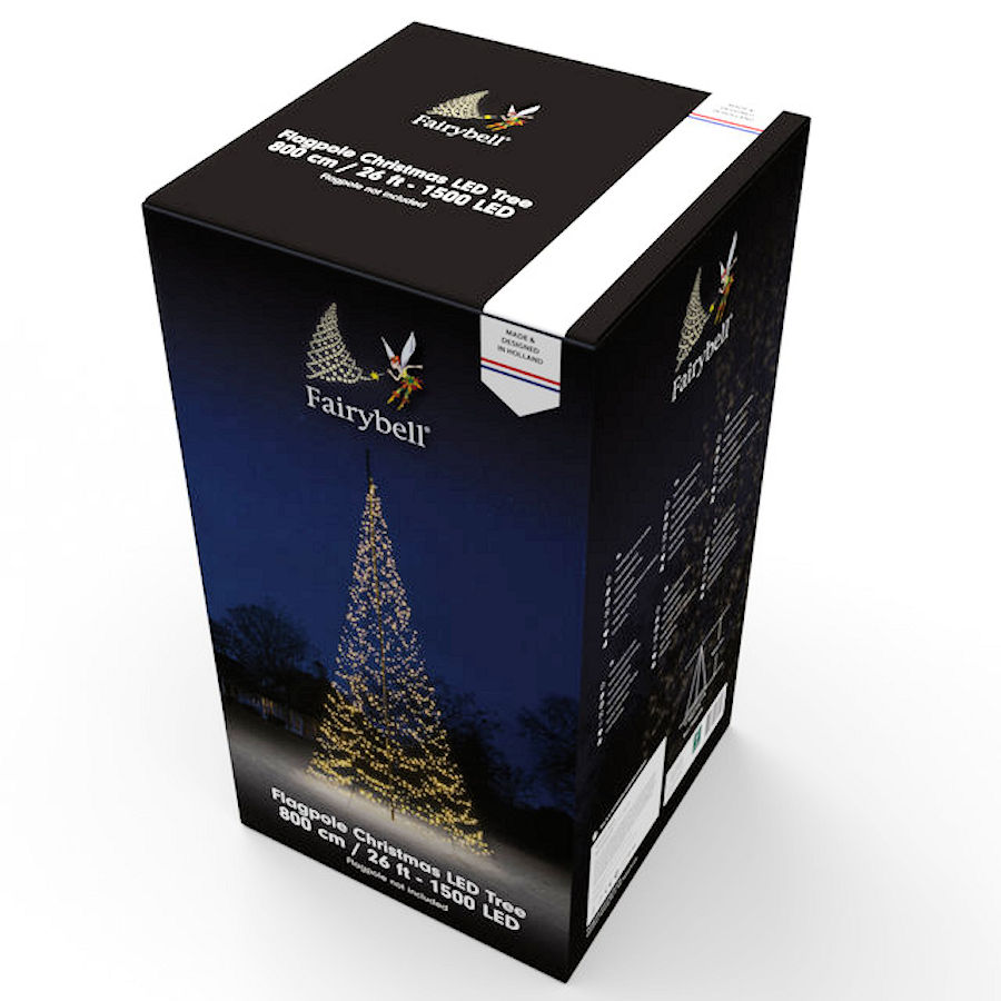 Ein strahlend leuchtender Weihnachtsbaum zum selberbauen für die Advents- und Weihnachtszeit. Dieser LED-Tannenbaum von Fairybell ist ein absoluter Blickfang. Wer bereits einen Fahnenmast besitzt, kann diesen zu einer individuellen Weihnachtsdekoration mit einem kräftigen Schuß Extravaganz umgestalten. Der LED-Weihnachtsbaum weist eine imposante Höhe von 8 m auf und ist mit insgesamt 1500 warmweißen LED bestückt. Diese beeindruckende Dekorations-Idee zieht auch über größere Entfernungen alle Blicke auf sich. Da wird nicht nur Ihr Nachbar neidisch. Der Aufbau des LED-Weihnachtsbaums ist einfach, in etwa 30 Minuten erledigt und kann auch von einer Person durchgeführt werden. Es sind keine unterstützenden Konstruktionen oder Werkzeuge für den Aufbau erforderlich. Eine ausgeklügelte Aufhängevorrichtung mit 6 vertikalen Ebenen erleichtert den Aufbau. Der Weihnachtsbaum kann mit dem Hiss-System wie eine Fahne am Mast hochgezogen werden. Die einzelnen Lichtstränge werden mit einem speziellen, witterungsbeständigen 31-Volt-Transformator verbunden, der ganz einfach an der Steckdose angeschlossen wird. Falls Sie noch keinen Fahnenmast besitzen, bieten wir diesen auch gerne an: Wenn Weihnachten vorbei ist, kann der Baum problemlos und platzsparend in der Originalverpackung aufbewahrt werden, so dass Sie ihn Jahr für Jahr genießen können. Verwandeln Sie Ihr Anwesen in ein Weihnachtsmärchen mit Fairybell. |