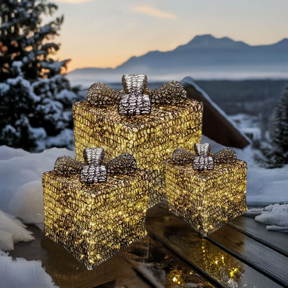 FDL LED Weihnachtsgeschenke 3er-Set, Boxen Acryl 40, 50 und 60 cm, 400...