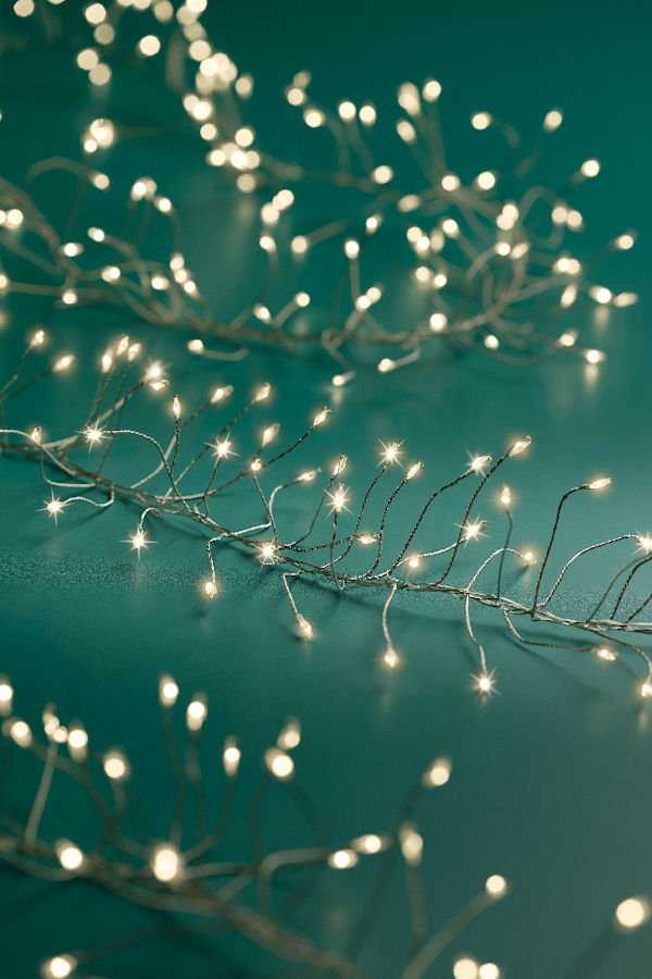 Edle Draht-Clusterkette mit kleinen LED-Tropfen für eine märchenhafte Lichtdekoration im Innen- und Außenbereich.