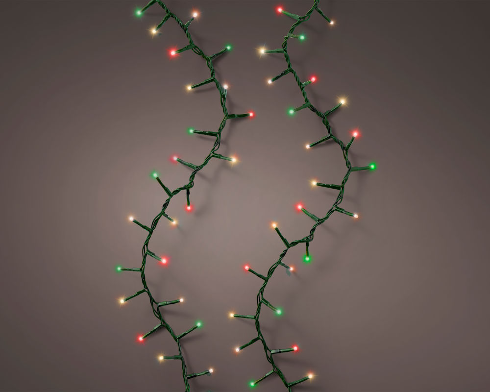 Die Lichterkette HOLY-LIGHTS ist mit insgesamt 750 LED besetzt, die in einem Mix aus roter, grüner und klassisch-warmweißer Lichtfarbe glanzvoll erstrahlen. Die 16 m lange Compact-Lichterkette hat eine herrliche Lichtwirkung, da der Lampenabstand der ca. 4 mm kleinen Ricelight-LED lediglich 2,2 cm beträgt.