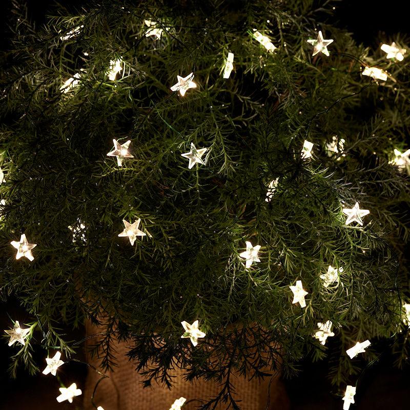 Die Lichterkette der FAIRY LIGHTS-Serie aus dem Hause SIRIUS besteht aus dunkelgrünem Metalldraht. Auf einer Länge von 4,2 m ist er mit 40 warmweiß strahlenden LED-Sternen besetzt. Der grün glänzende, fast unsichtbare Draht ermöglicht den trendigen Märchen-Look, der die Mini-Sterne fast schwerelos in einem warmweißen Lichter-Bouquet erstrahlen lässt. Dekorieren Sie nach Herzenslust kleine Büsche, Planzen, Mini-Weihnachtsbäume, Adventskränze, Weihnachtsgestecke und andere Arrangements mit Tannengrün, Moos und Zweigen überall in Ihrer Wohnung, im Garten, auf der Terrasse und dem Balkon. So kommt der Look am schönsten zur Geltung. Besonders praktisch ist, dass sich der Draht biegen lässt und so seine gewünschte Form behält. Die LED-Sterne sind im Abstand von ca. 9,5 cm angeordnet, wobei der Abstand zwischen dem letzten Stern und dem Batteriefach ca. 30 cm beträgt.