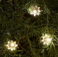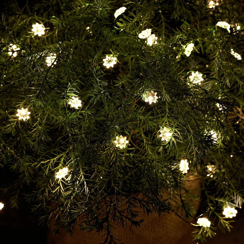 Die Lichterkette der FAIRY LIGHTS-Serie aus dem Hause SIRIUS besteht aus dunkelgrünem Metalldraht. Auf einer Länge von 4,2 m ist er mit 40 warmweiß strahlenden LED-Sternblüten besetzt. Der grün glänzende, fast unsichtbare Draht ermöglicht den trendigen Märchen-Look, der die Mini-Weihnachtssterne fast schwerelos in einem warmweißen Lichter-Bouquet erstrahlen lässt. Dekorieren Sie nach Herzenslust kleine Büsche, Planzen, Mini-Weihnachtsbäume, Adventskränze, Weihnachtsgestecke und andere Arrangements mit Tannengrün, Moos und Zweigen überall in Ihrer Wohnung, im Garten, auf der Terrasse und dem Balkon. Denn so kommt der Look am schönsten zur Geltung. Besonders praktisch ist, dass sich der Draht biegen lässt und so seine gewünschte Form behält. Die LED-Sternblüten sind im Abstand von ca. 9,5 cm angeordnet, wobei der Abstand zwischen der letzten Sternblüte und dem Batteriefach ca. 30 cm beträgt.