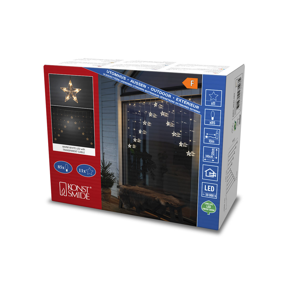 Lichterkette: 11 Sterne, 85 LED warmweiss (2500 k) |